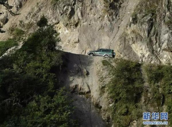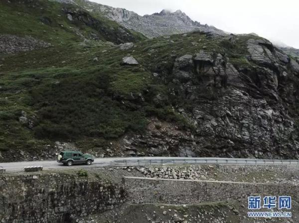 在崎嶇陡峭的山路上,亞林駕駛郵車(chē)由縣城趕往乃堆拉哨所投遞、交換郵件。