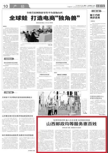 目前,山西郵政已經形成了公司黨組對郵政普遍服務和特殊服務工作全面負責,一個牽頭部門、兩個執行部門、四個保障部門、四個支撐部門和一個監督部門的普遍服務運營機制,確保普遍服務工作的落實橫到邊、豎到底。