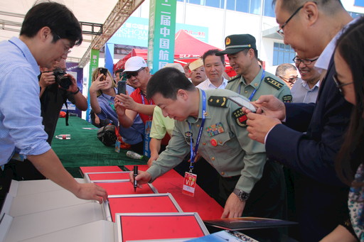 11月6日,第十二屆中國國際航空航天博覽會在珠海開幕,中國十大軍工企業(yè)首次大規(guī)模參展。開幕式后,中國進入太空第一人、太空郵局局長楊利偉來到二號館前的郵政服務點,看望慰問現(xiàn)場的郵政服務人員,并在航空航天主題郵品上簽名。