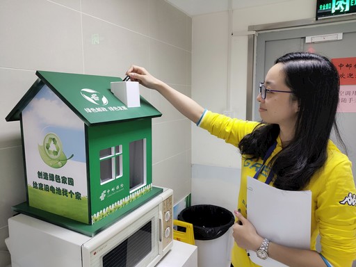 圖為中郵保險湖北分公司開展的“廢舊電池之家”活動。 □由保昌 攝影報道