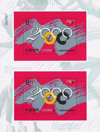 第27屆奧林匹克運動會于2000年9月15日~10月1日在澳大利亞悉尼舉行。中國共奪得28枚金牌,名列參賽國第三名,成為中國邁向世界體育強國征程中的一座里程碑。當(dāng)年9月15日中國郵政發(fā)行《第二十七屆奧林匹克運動會》紀(jì)念郵票小型張1枚,圖案為藝術(shù)化的奧運旗幟,五環(huán)與“2000”巧妙組合,同時還首次發(fā)行了小型張雙連張。
