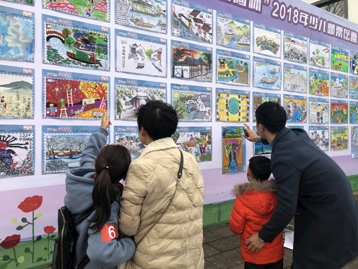 浙江分公司少兒郵票設(shè)計(jì)大賽展示現(xiàn)場(chǎng)。
