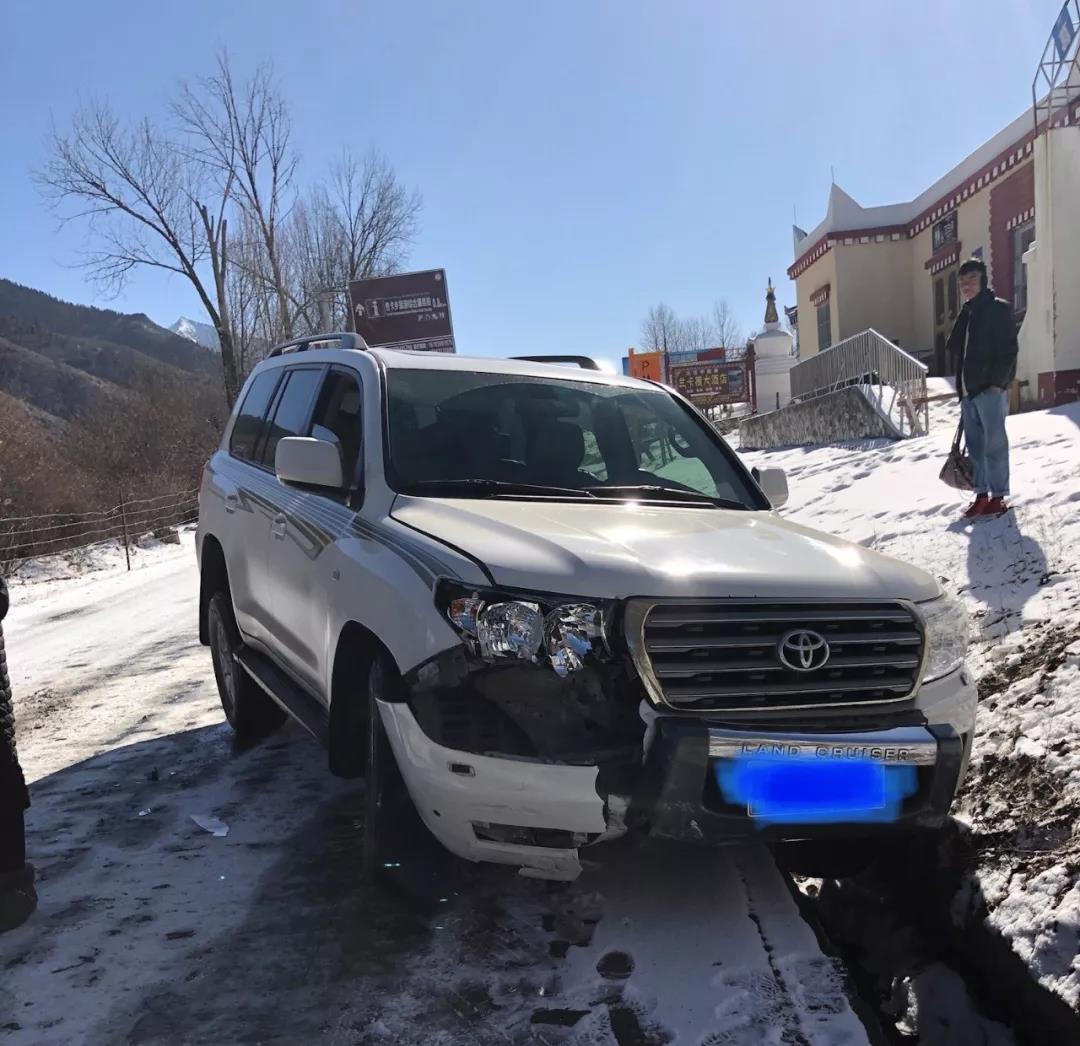 無奈之下我們改為第二天早上出發,結果出發不久我們就體驗了傳說中的蜀道之難。從康定市到甘孜縣全程300多公里,開車卻需要8個小時,到處都是盤山路和冰面路段,中午11點53分,我乘坐的車輛突然打滑,追尾前面的轎車,一個輪胎沖進了路邊的排水渠。