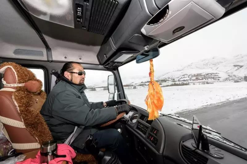 其美多吉已經工作30年了,每次運送郵件都是天不亮就出發,迎著朝陽在路上飛馳。給我印象最深的就是郵車里空間很小,勉強可以擠下3個人,而且每次過減速帶的時候,整個人都會被顛簸得飛起來。路上我問其美多吉,你們這個郵車駕駛室空間這樣狹窄,休息都很費勁,不難受嗎?他卻說這輛車是新的,條件不知道比以前好多少倍。以前的車里連空調都沒有,一開起來灰塵也很大,這輛新車有空調,有一個小小的臥鋪,還有GPS定位,他非常滿意。