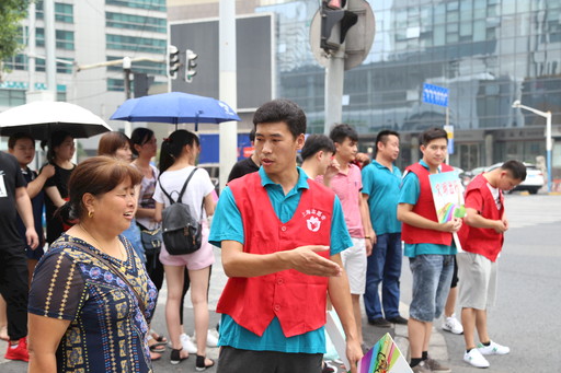 當(dāng)了人大代表也要帶頭做志愿者。2018年7月,柴閃閃參與上海站地區(qū)文明指路志愿活動(dòng)。
