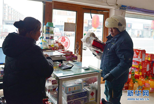 在琿春市春化鎮,金仁哲為留守老人代買生活用品。