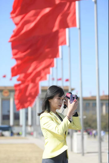 一說起添彩,還有今天報道會議開幕的女主持人、女記者,站在天安門廣場上,口播新聞,一遍一遍,只為了以最佳的姿態、最好的面貌出現在觀眾面前。