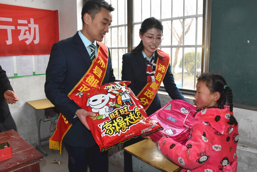 2月17日是江蘇省沛縣郵政分公司結對幫扶小學河口鎮共和村共和小學開學的日子。這天,該分公司機關黨支部10余名青年黨員志愿者早早來到共和小學,為25名貧困學生送上新書包、文具等學習用品,并鼓勵他們在新學期好好學習,健康快樂成長。 □姜麗麗 攝影報道
