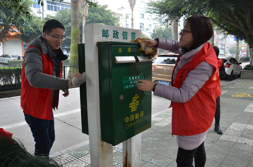3月5日,浙江省玉環市郵政分公司開展了“擦亮‘郵名片’”志愿活動,組織廣大黨員志愿者對街頭的E郵柜、信箱、信筒進行清洗。此次志愿活動展現了玉環市分公司黨員積極向上的精神風貌?!跞~瑋 攝影報道
