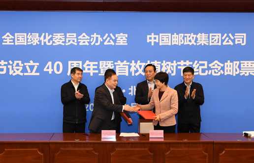 3月11日,中國郵政集團公司與全國綠化委員會辦公室在京共同舉辦紀念植樹節設立40周年暨首枚植樹節紀念郵票發布儀式,并現場簽署合作框架協議。全國綠化委員會委員、國家林業和草原局副局長劉東生,國家郵政局副局長戴應軍,中國郵政集團公司黨組副書記李丕征、副總經理張榮林,全國綠化委員會辦公室專職副主任胡章翠等出席發布儀式。