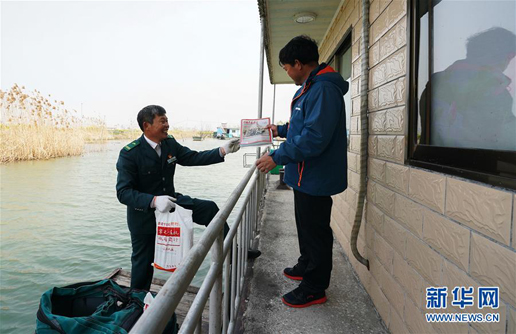 唐真亞是江蘇省淮安市洪澤區(qū)老子山鎮(zhèn)郵遞員,今年55歲。整整20個年頭,唐真亞在水況復(fù)雜的洪澤湖上,攜帶郵件劃出了20萬公里的“水上郵路”,贏得湖區(qū)漁民的由衷贊譽。