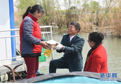 正式上崗后,唐真亞才發(fā)現(xiàn)這個工作太難干了。一天的投遞工作正常要劃船20多公里,最多時40多公里。夏天高溫暴曬,有時突然就一陣狂風(fēng)暴雨;到了冬天,空曠的湖面上沒遮沒擋,寒風(fēng)徹骨。知道丈夫跑船辛苦,妻子閆玲只要有時間就會陪著唐真亞一起跑這條“水上郵路”。同樣是漁民的女兒,閆玲船上的活計樣樣在行,為唐真亞減輕不少負(fù)擔(dān)。