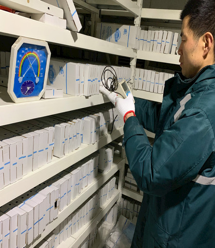 郵政員工利用溫度記錄儀監控溫度。