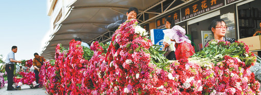 “鮮花論斤賣,賣花像賣菜”,描繪的是云南昆明的斗南花市,這是亞洲最大、世界第二的花卉交易市場,被譽(yù)為“亞洲花都”,上市鮮花100個大類、1600多個小品種,每天有1000-1200噸鮮切花從這里通過航空、鐵路、公路運(yùn)往全國80多個城市,遠(yuǎn)銷50多個國家和地區(qū),是全國花卉市場的“風(fēng)向標(biāo)”和花卉價格的“晴雨表”。