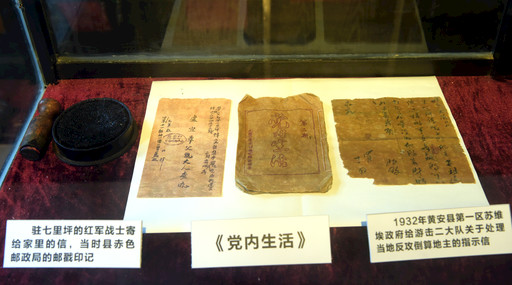 紅安縣赤色郵政局里,展示著象征紅四方面軍、紅二十五軍、紅二十八軍“三軍合一”的紅旗以及《小平您好》《中國夢》《中國工農紅軍長征勝利八十周年》等紅色郵品;懸掛著《董必武同志誕生一百周年》《徐向前同志誕生九十周年》《中國人民解放軍大將王樹聲》等紀念郵票;陳列著黨在土地革命時期的指示信、紅軍家書和赤色郵政工作服、郵包、郵戳、草鞋、蓑衣、斗笠等用品用具,已有數千人到此接受愛國主義教育。