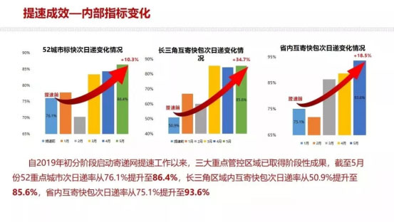 劉愛力還介紹了集團公司自2019年初分階段啟動寄遞網提速工作以來,三大重點管控區域取得的階段性成果,寄遞業務時限質量有了大幅提升。