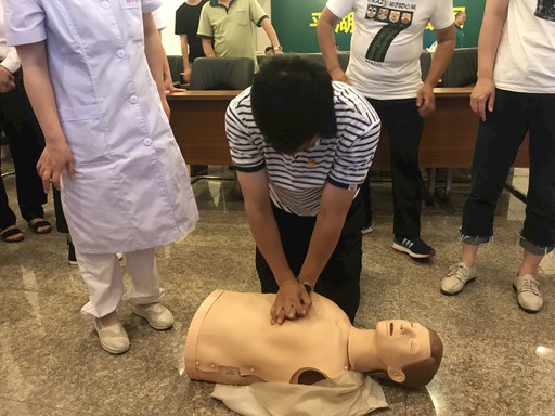 培訓中,急救培訓師為大家詳細講解了應急救護知識,示范了急救技巧,參培人員體驗了模擬應急救護;市消防大隊教官結合日常工作,講解了消防知識,并組織大家進行逃生演練。