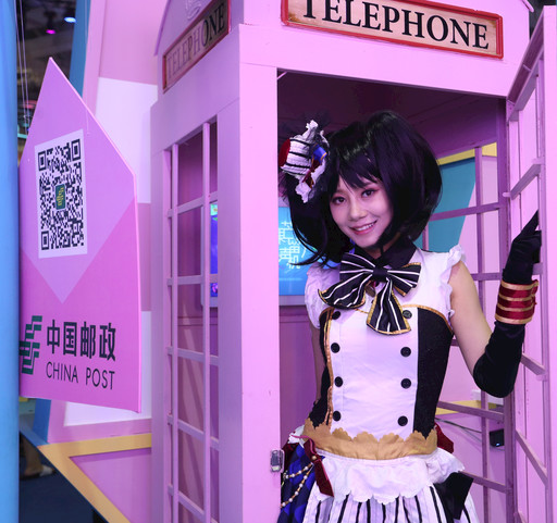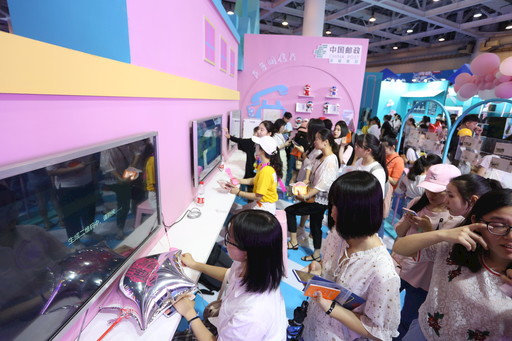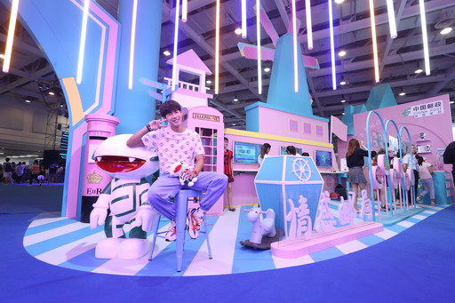 以淺藍(lán)、粉紅為主色調(diào)的郵政展區(qū)撥動了無數(shù)少女的心,cosplay模特也前來體驗。