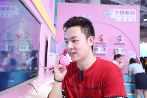 粉藍(lán)相間的主體配色、浪漫的彩色燈飾少女心十足,4臺聲音明信片錄制設(shè)備科技感滿滿......中國郵政的展區(qū)就在主舞臺的旁邊。“00后”女孩沈佳珎剛剛在這里制作完一張聲音明信片,便急不可待地向朋友們展示她的“成果”。“沒想到明信片也有這么新穎的傳遞方式。”她掃描明信片上的二維碼,嘗試著回放自己剛剛錄制的聲音。聲音明信片錄制設(shè)備,可以將心里話錄制下來,生成二維碼,即時打印在明信片上。為了體驗制作聲音明信片,大家排起了長隊,成為展場的一道風(fēng)景線。