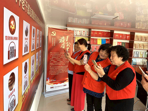“打開微信掃一掃。”來自紅馬甲老干部志愿服務(wù)隊(duì)的王女士是有聲圖書室的第一位讀者。她對(duì)著圖書墻上的二維碼,口中念念有詞:“黨員的初心和使命,掃好了,然后再點(diǎn)其中的一本書,就可以聽了。”按照墻上的操作提示,王女士很快就學(xué)會(huì)了整個(gè)掃閱流程。她很開心地說:“我今年76歲了,年紀(jì)大了,有點(diǎn)兒老花眼,書上的字看不清,今天聽說社區(qū)開辦了有聲圖書館,就特地來看看。我們老年人就需要這樣的聽書方式。剛才我還聽說用微信掃一掃,還可以帶回家聽呢,多方便啊!”