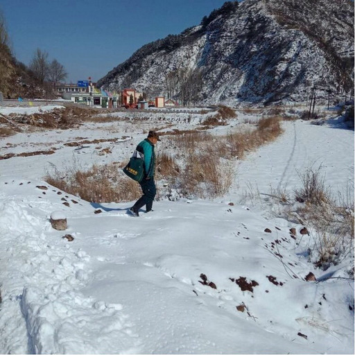 10多年前的孟山鄉,條件十分艱苦,環境十分惡劣。那時的孟山鄉一帶鮮有橋梁,每次暴雨時節,郭成明為了不讓用戶的郵件受到損失,每次過河前都將郵件用塑料包好,冒著大雨往返河流15次,將郵件完好無損地交到收件人手中。雖說每次都是有驚無險,但長途的跋涉“危險”也常伴左右,記得那是2010年冬天的一個傍晚,天色漸暗,他送完最后一個郵件想趁著天還沒有全黑趕回家中,可就在出村不遠的一條羊腸小道上,前方突然出現大片暗冰。他急踩剎車后,摩托車朝著路邊深溝沖了過去。他急忙握緊車把調轉方向,卻又撞向了路邊的山崖,重重地將他摔在了地上。這一次的經歷造成了郭成明腿部靜脈曲張、腰椎間盤突出的傷痛,可他仍然堅持在這條郵路上跋涉,從來沒有抱怨過。