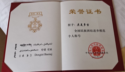 四川省甘孜藏族自治州甘孜縣郵政分公司長途郵運駕駛員其美多吉榮獲全國民族團結進步模范個人稱號,習近平總書記親自為其美多吉頒發獎章和證書。