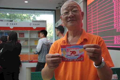 舉國歡慶之際,山西省晉城市郵政分公司隆重舉行《中華人民共和國成立七十周年》紀念郵票首發活動。10月1日上午,百余名集郵愛好者早早來到澤州路營業廳前自覺排隊,翹首期盼。8時,首發活動在晉城市分公司合唱隊慷慨激昂的《歌唱祖國》歌聲中開啟,兩位名為“國慶”的集郵愛好者被邀請為郵票揭幕?,F場還設立了臨時郵局,工作人員身著工裝,黨員佩戴黨徽,規范操作,有序引導。