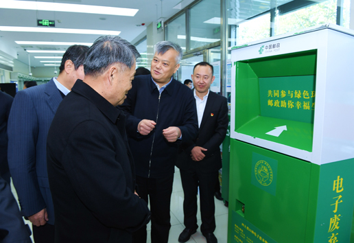 走進(jìn)百萬莊支局營業(yè)廳,楊傳堂一行首先觀看了中國郵政綠色行動宣傳片。中國郵政于2018年率先啟動了綠色行動,系統(tǒng)部署綠色包裝、綠色運(yùn)輸和綠色金融三大工程,下發(fā)了綠色行動三年規(guī)劃,全力以赴將綠色行動推向深入,致力于治理企業(yè)包裝污染和運(yùn)輸污染、致力于支持全社會污染防治工作。李丕征還介紹了中國郵政成立綠色包裝創(chuàng)新實(shí)驗(yàn)室、加強(qiáng)綠色包裝技術(shù)創(chuàng)新研發(fā)等情況,楊傳堂對此給予肯定。