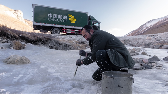 其美多吉當(dāng)時(shí)有自己的貨車,收入也不錯(cuò),但一聽說能開郵車,“我什么都愿意接受”。他從小就喜歡“郵政綠”,喜歡那個(gè)標(biāo)志,那代表的是山外的世界。小時(shí)候在路上看到郵車,他就忍不住揮手,在孩子眼中,郵車司機(jī)更是威風(fēng)八面。