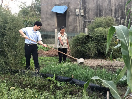 胡博為當(dāng)?shù)剞r(nóng)戶(hù)灌溉菜地,將暖心服務(wù)送至田間地頭。