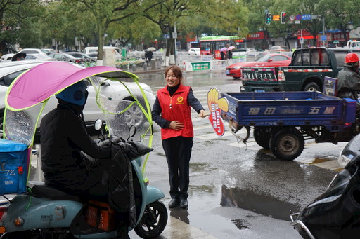 12月19日早高峰時段,浙江省樂清市郵政分公司的黨員志愿者走上街頭,開展“文明垂范 志愿先行”活動。“您好,請遵守交通規則,非機動車請退至安全線內等候紅燈。”黨員志愿者身穿紅馬甲,手持“文明出行你最棒”勸導牌,耐心引導過往行人和非機動車輛遵守交通規則,勸導不文明交通行為。