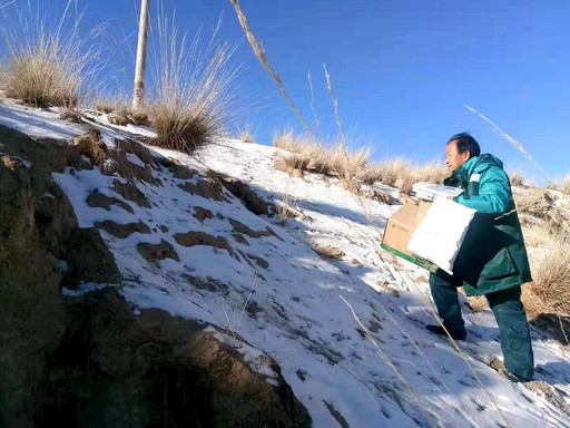 寒冬時節,海拔3800米的甘肅省甘南藏族自治州多地風雪交加,昔日人歡馬嘶的甘南大草原蓋上了一層厚厚的“棉被”,而瑪曲縣歐拉秀瑪郵政所的南吉草正深一腳淺一腳,迎著風雪,艱難地行走在熟悉的郵路上……“都是鄉親們等著急用的包裹呢,不敢給人家耽誤嘍,堅持一會兒就送完了。”南吉草拍了拍肩上的郵包,憨厚一笑,深邃的目光看了看遠方,繼續前行。白雪覆蓋的路面上,留下了一串串堅實的腳印。