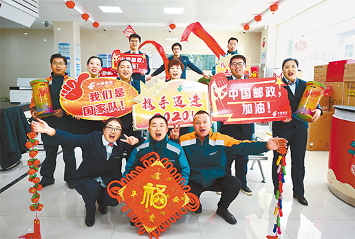 2020年是全面建成小康社會的決勝之年,對于剛剛改制的中國郵政來說,又將是激動人心的一年。站在新的時間節點,一線員工正以全新面貌投入到推進企業高質量發展之中。圖為江蘇省徐州市銅山區大黃山郵政支局員工喜迎新年。 □劉立明 攝影報道