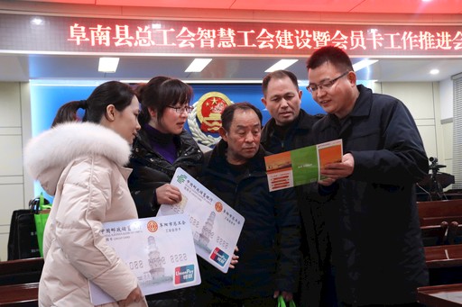 1月8日,郵儲銀行安徽省阜南縣支行聯(lián)合縣總工會,舉行了智慧工會建設(shè)暨會員卡工作推進(jìn)會。該會員卡免費(fèi)向全縣工會會員發(fā)放,集工會幫扶服務(wù)、優(yōu)惠購物消費(fèi)、金融理財?shù)榷喾N功能于一體,持此卡可享受一元洗車、一元觀影、超市滿減、節(jié)日惠等優(yōu)惠。截至目前,該會員卡已發(fā)放2000張。圖為阜南縣支行工作人員在推介會員卡。□劉華武 張晨曦 攝影報道
