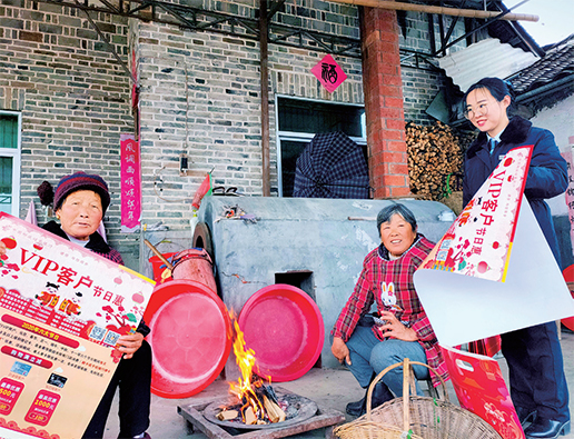 郵儲銀行安徽省金寨縣支行工作人員為村民送去春節大禮包。 李明 攝