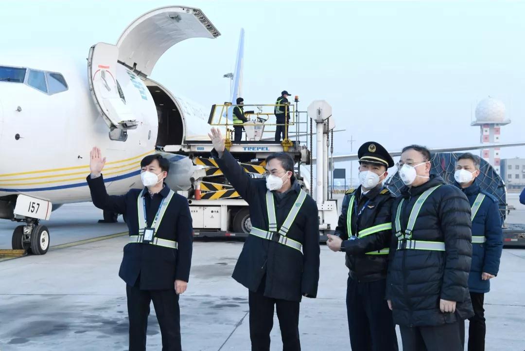 1月31日清晨,國家郵政局黨組書記、局長馬軍勝,中國郵政集團有限公司黨組書記、董事長劉愛力一行,來到北京首都機場郵航飛機停機位,看望慰問即將執飛北京至武漢防疫救援物資專機的飛行機組和保障人員,向他們致以新春問候,對他們執飛專機運輸防疫物資表示衷心感謝,希望他們切實做好自身防護,安全執飛專機,繼續為助力打贏疫情防控阻擊戰作出積極貢獻,切實做到使命必達,讓黨和人民放心,充分彰顯行業“國家隊”的使命擔當。