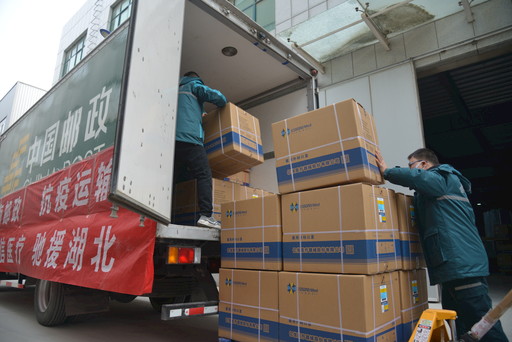 為確保防疫物資及時運送,河南省、新鄉(xiāng)市、長垣市三級郵政企業(yè)緊急響應(yīng)、全力支撐,組織人員和車輛,協(xié)調(diào)中間環(huán)節(jié),為開通專線做足準備。當天16點,我和連玉強戴上口罩,準備好政府和單位共同出具的通行證明以及隔離服、口罩、鞋套、護目鏡等裝備,滿載著由愛心企業(yè)捐贈的2萬個醫(yī)用外科口罩、5萬雙橡膠外科手套,共計138箱防疫物資,緊急駛往武漢大學(xué)中南醫(yī)院。