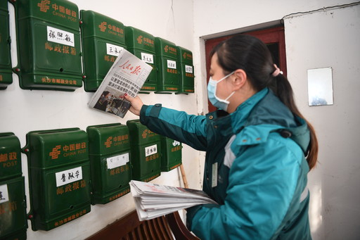 湖南省郵政分公司優化網運作業組織和生產流程,縮短投遞內部作業時限,讓投遞員提早出班,全力以赴做好黨報黨刊投遞工作,將黨中央關于疫情防控工作的最新指示精神及時、準確傳遞到千家萬戶。湖南省分公司為投遞網點配備了洗手液、消毒液、測溫儀,每隔兩小時對投遞作業現場進行消毒,出班前、歸班后對攬投車輛進行噴灑消毒;為投遞人員配備了醫用口罩,并在到崗和歸班時進行體溫檢測,體溫正常方可上崗。圖為2月11日,長沙市分公司車站路攬投員楊望歸在芙蓉區五里牌社區投遞當日《人民日報》。 記者 劉園園 攝影報道