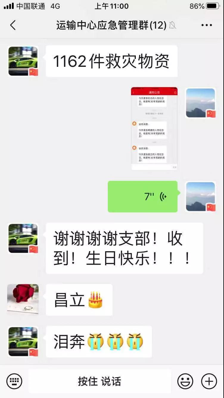 此刻,鄭州郵區中心局運輸中心黨支部一行人早已在郵車旁等候,準備為張昌立送上一份特別的“生日祝福”:一張政治生日賀卡、一束鮮花和幾句暖心的問候讓30年黨齡的老黨員張昌立熱淚盈眶。他激動地說:“作為一名共產黨員,面對疫情就應該沖鋒在最前線,請黨組織放心,我們一定會做好疫情防護,安全駕駛,堅決完成武漢郵路運輸任務,為黨旗增光添彩!”