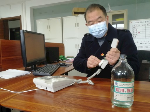 周中榮接班后的第一件事就是用酒精對(duì)辦公物品進(jìn)行消毒。