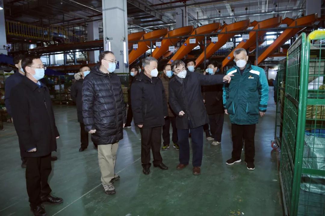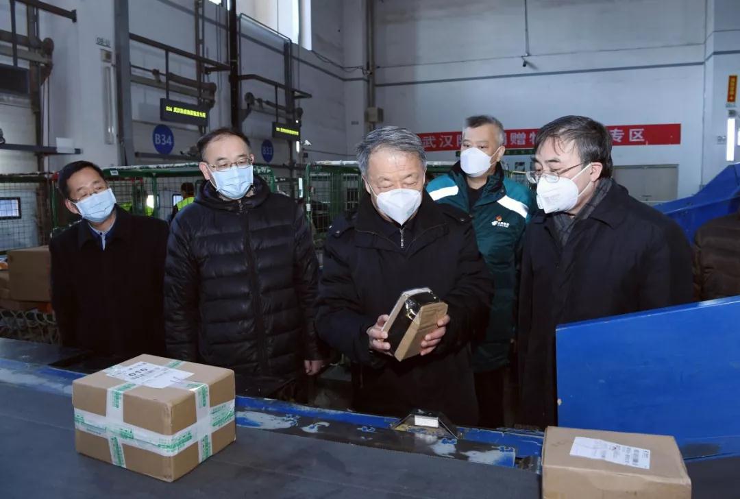 楊傳堂在北京郵件綜合處理中心了解了當前郵件快遞及捐助物資專車發運等工作,詳細詢問了郵件寄遞、員工返崗及防護物資配備等情況。
