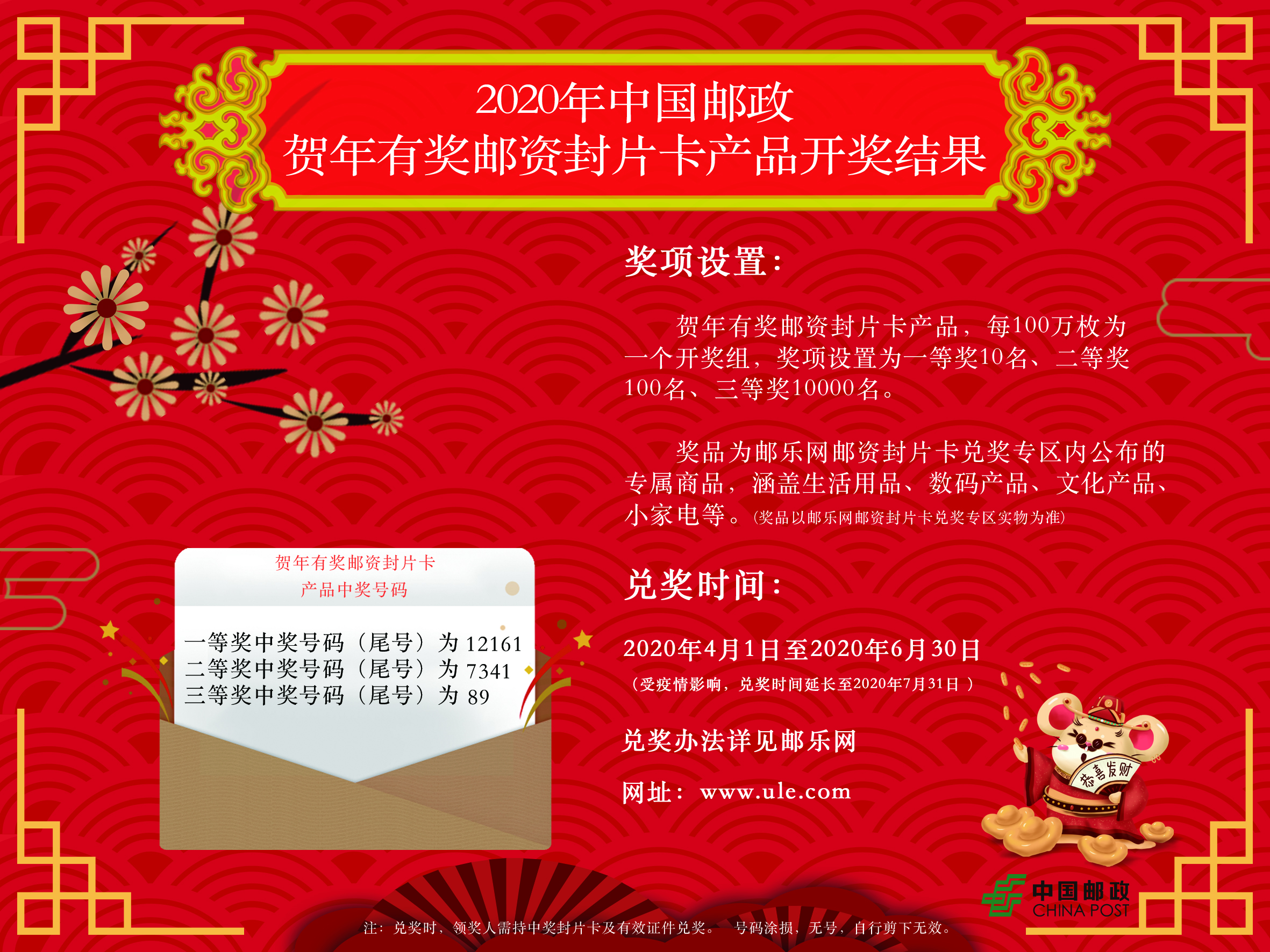 2020年賀年有獎郵資封片卡中獎號碼于3月18日產生?,F將具體中獎信息通知如下: