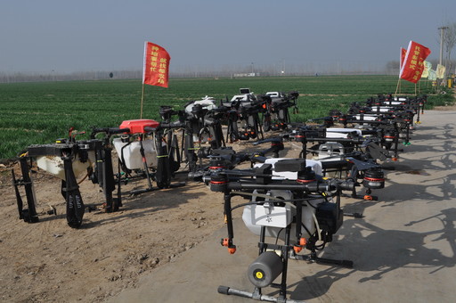 飛防作業前,11架無人機整齊排開,場面甚是壯觀。