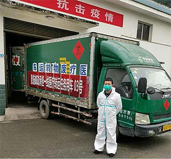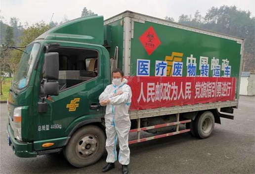 得知消息后,州郵政公司員工、退役軍人尹江、向耀俊、江道權(quán)做通家屬工作,主動(dòng)要求參與轉(zhuǎn)運(yùn)工作,火線組建突擊隊(duì),駕郵車出征高危戰(zhàn)場(chǎng),為定點(diǎn)收治醫(yī)院轉(zhuǎn)運(yùn)醫(yī)療廢棄物。
