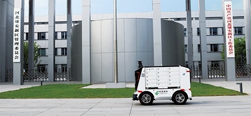 2019年 8月7日,中國郵政自主研發的無人投遞車亮相雄安新區。