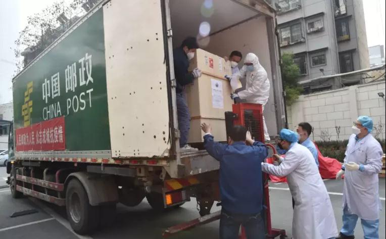 來自全國各地的各類物資,不分晝夜地被郵政運輸車送進疫區。