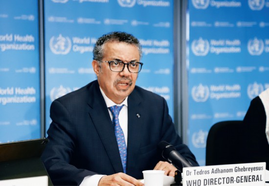 2020年2月17日,世界衛(wèi)生組織總干事譚德塞在世衛(wèi)組織有關新冠肺炎的例行記者會上說,中國疾病預防控制中心最新發(fā)布的有關新冠肺炎的流行病學報告,為世衛(wèi)組織向各國提出防控疫情的合理建議提供了幫助。 新華社記者 陳俊俠/攝