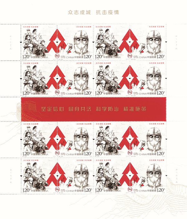 在印制工藝上,郵票還首次采用了“心形”異形齒孔,強化萬眾一心、抗擊疫情的寓意,也表達了前方后方心連心、共同抗疫的堅定信念。該套郵票由王虎鳴、劉向平設計,北京郵票廠影寫版工藝印制。
