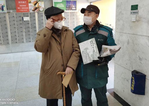 北京市西城區西外大街郵政支局投遞員侯毅來自湖北,疫情防控期間,無法回家的他把對家鄉的擔心和牽掛化為對段道內百姓的貼心服務。面對激增的郵件,侯毅主動承擔了兩個投遞道段的工作,每天從早上7點開始,一直忙到深夜。對于年齡較大的老年人更是特別關心,悉心了解他們的需求。圖為侯毅服務社區的一位老人。□閆迪 呂薇 攝影報道