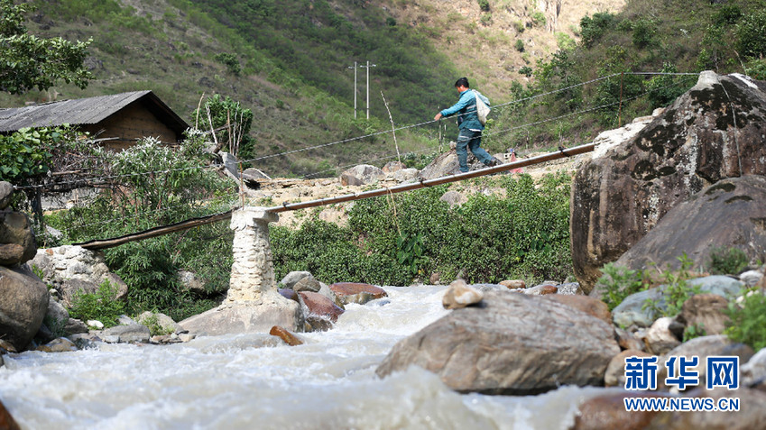 桑南才送郵件途中經過獨木橋(5月10日攝)。新華網 劉東 攝